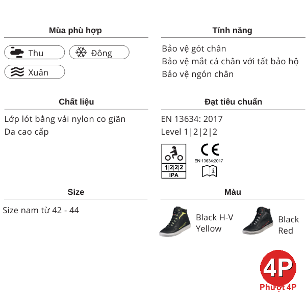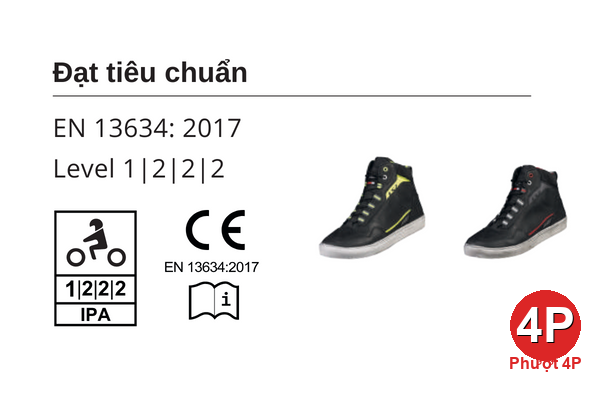 Giày LS2 Zoe Man được đánh giá cao về độ an toàn, được chứng nhận đạt tiêu chuẩn an toàn của Liên minh châu Âu (CE): EN 13634: 2017, Level 1|2|2|2.