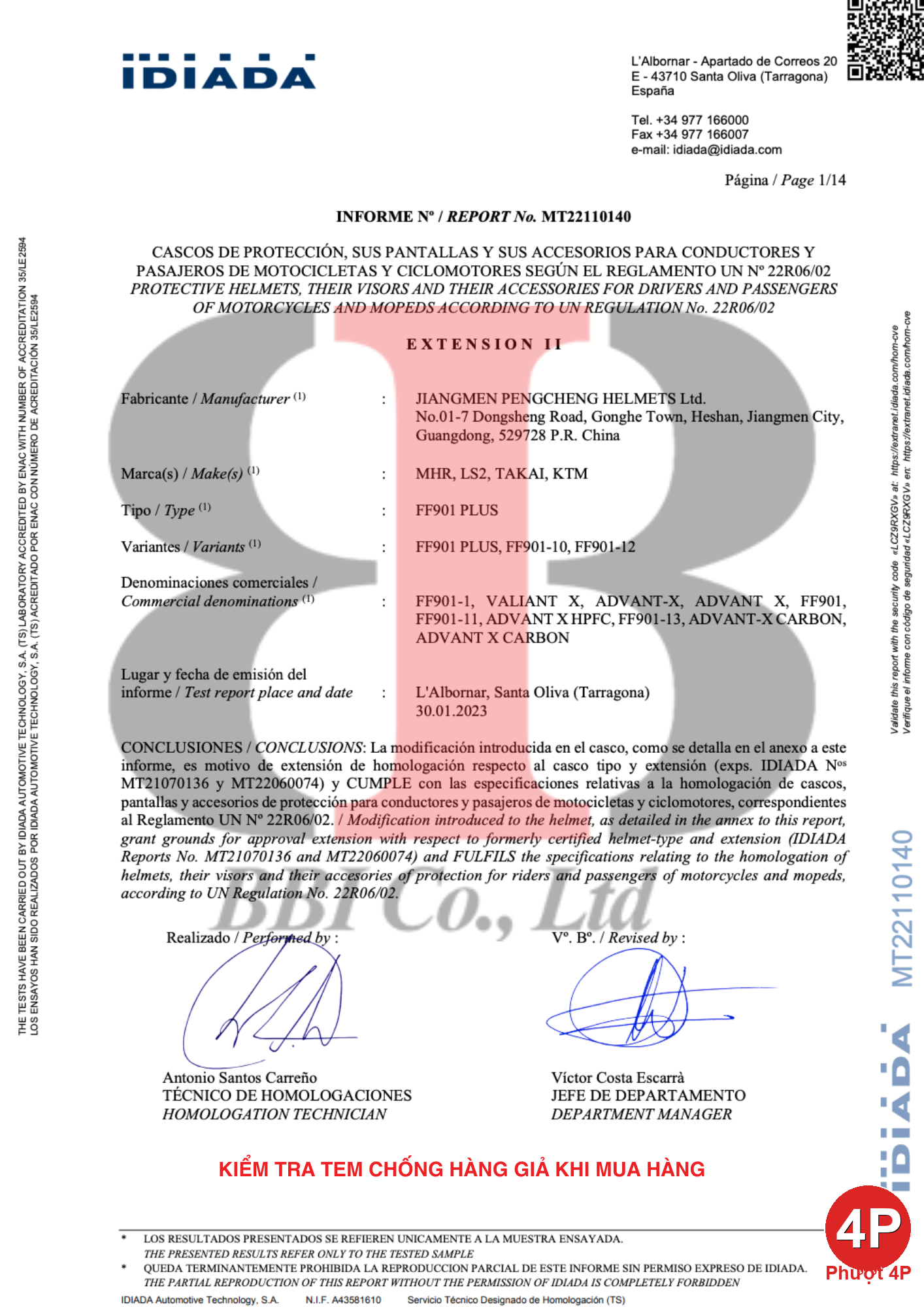 Về kích cỡ vỏ, LS2 FF901 Advant-X có 2 kích cỡ: XS-L / XL-3XL. Mũ LS2 Advant-X FF901 đạt tiêu chuẩn an toàn ECE 22.06 (Châu Âu).