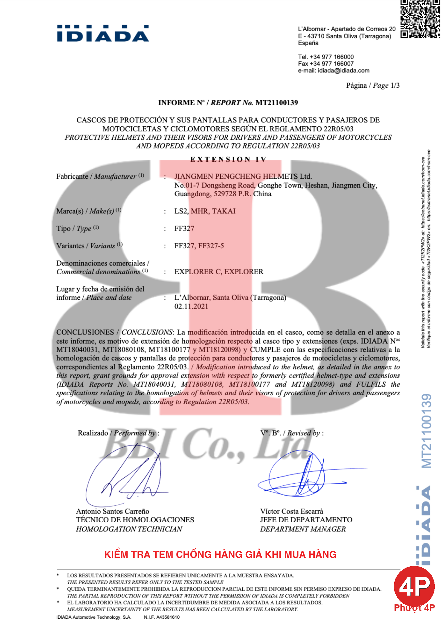 | Đạt chuẩn | Certified ECE 22.05 |