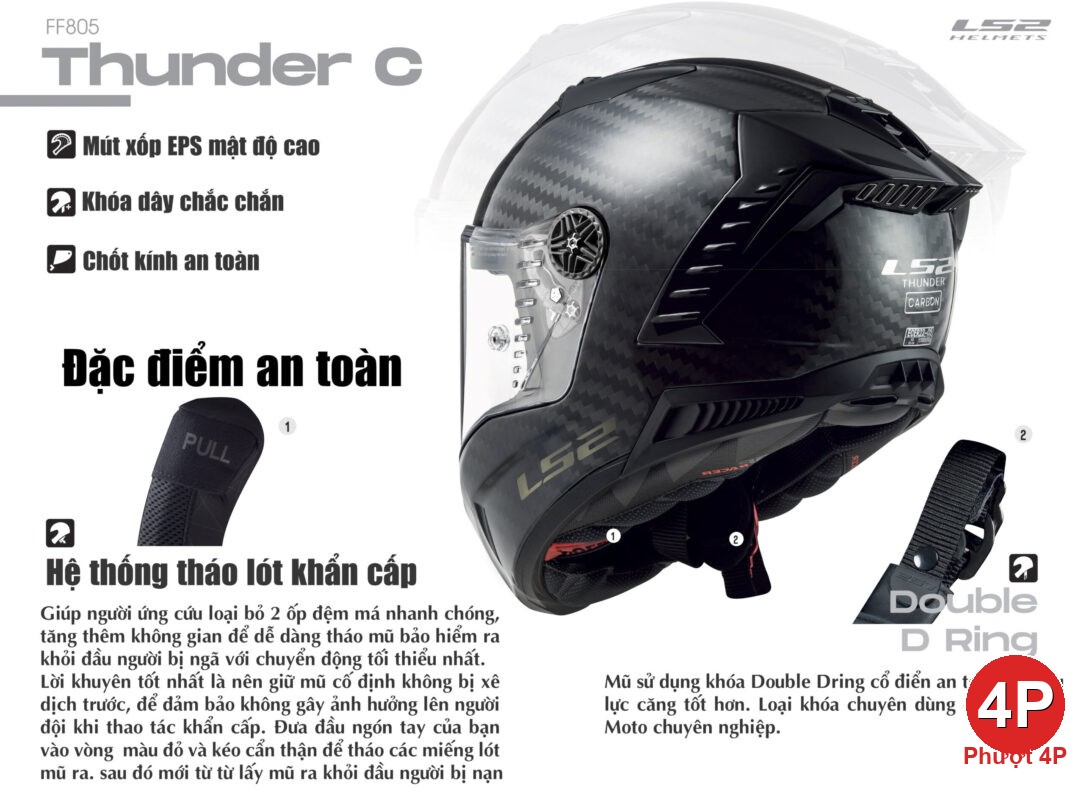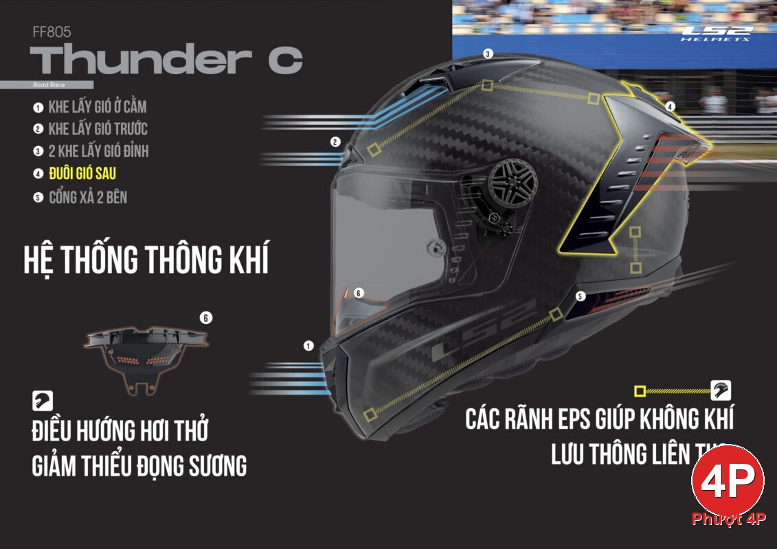 Mũ Fullface LS2 FF805 Thunder FIM Carbon - Phượt 4P