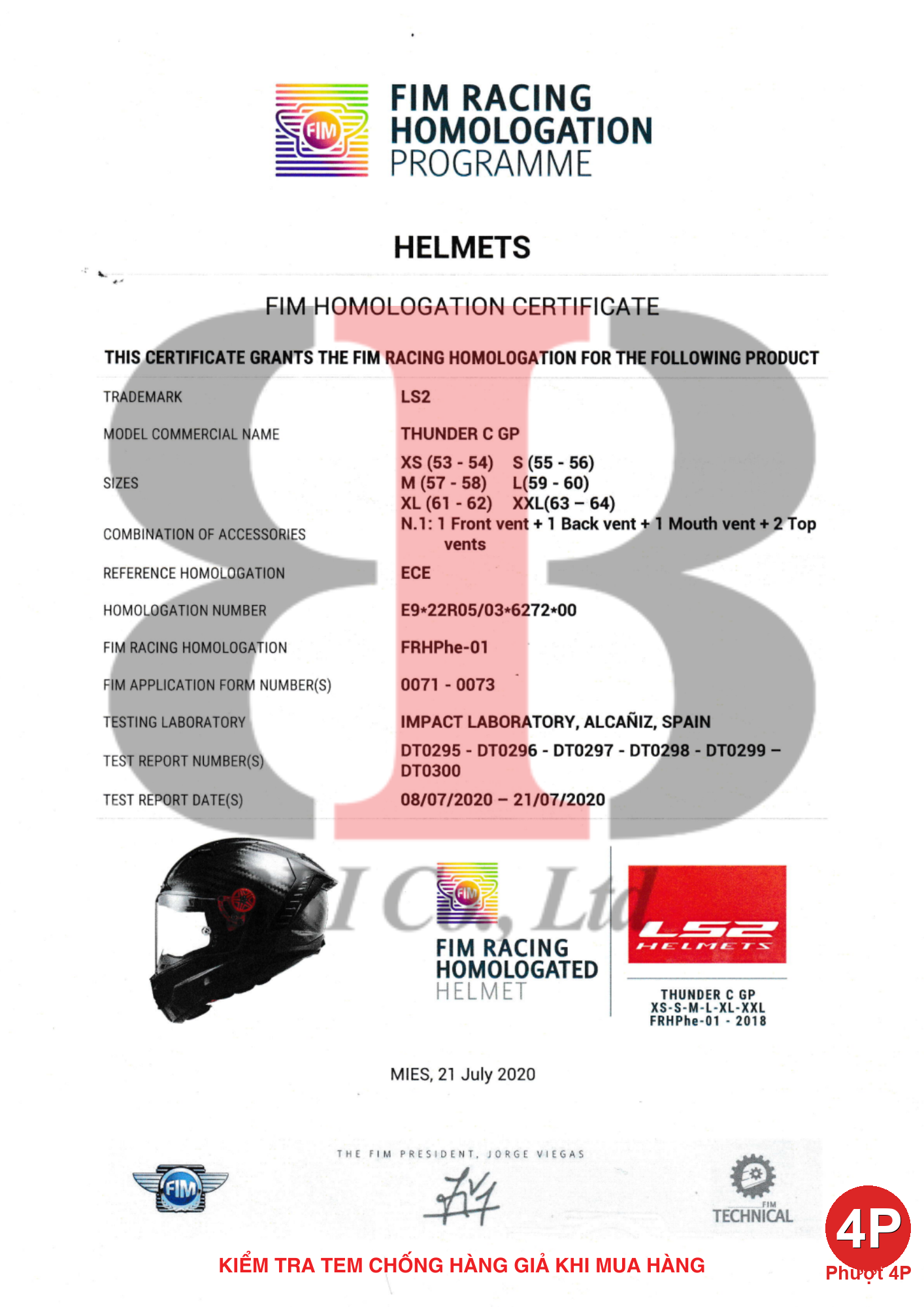 Trên phần dây quai của mỗi chiếc mũ bản FIM đều có gắn tem 3D QRcode dẫn về webste Tổ chức FIM thể hiện thông số kỹ thuật và chứng nhận mũ đạt chuẩn
