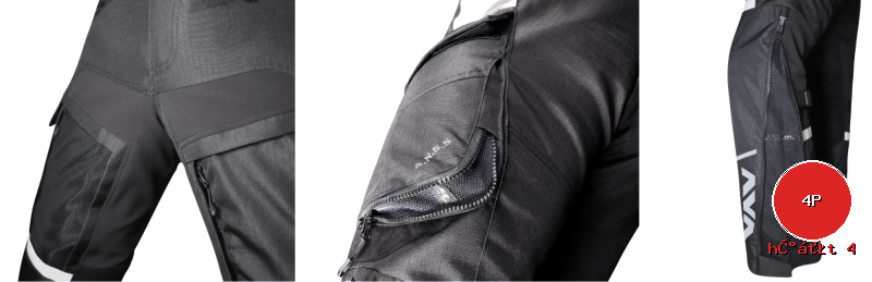 •Dây kéo ống quần 2 chiều, hệ thống túi ANSS •Da lộn ở mặt trong đùi kháng nhiệt. |